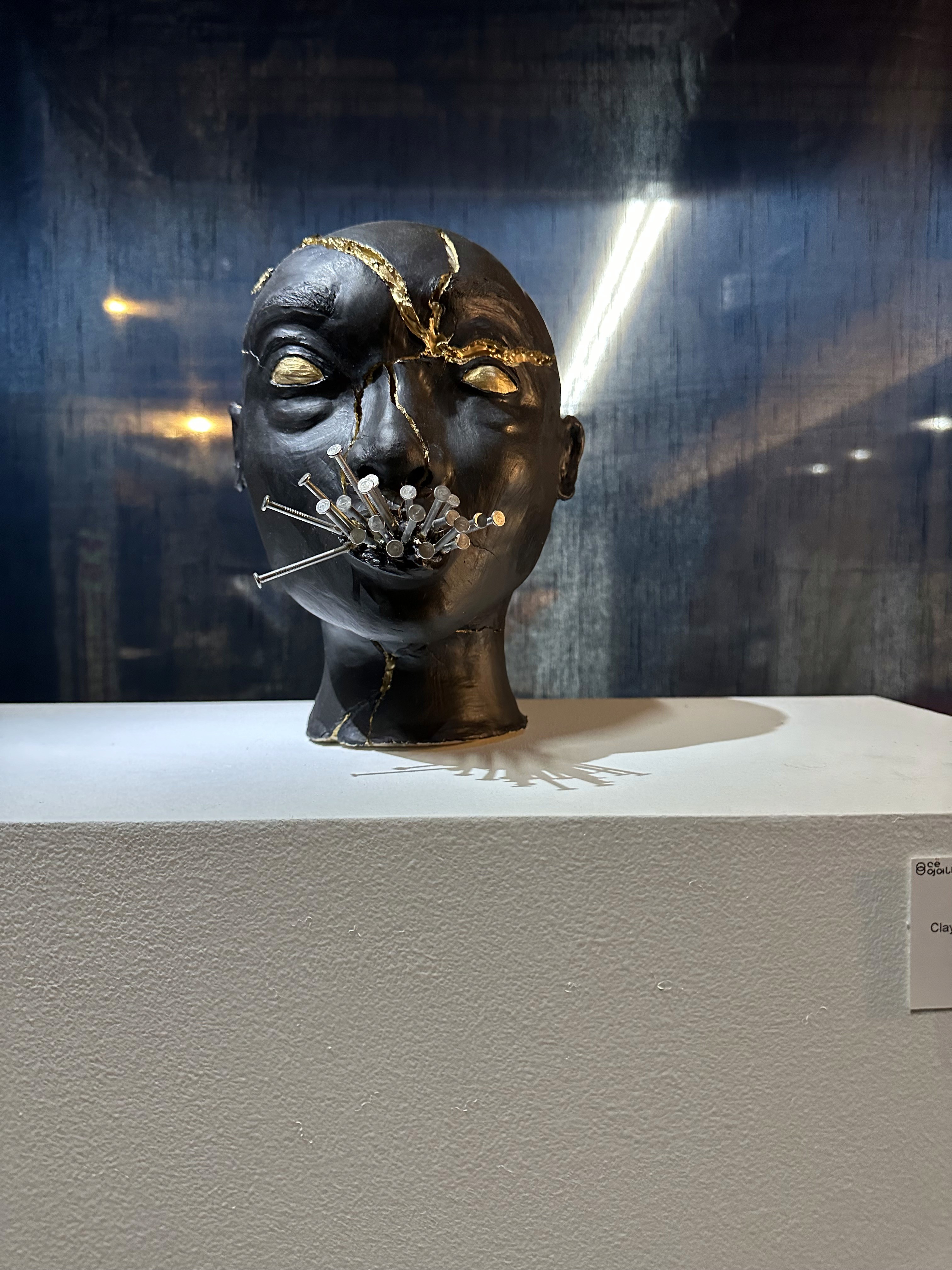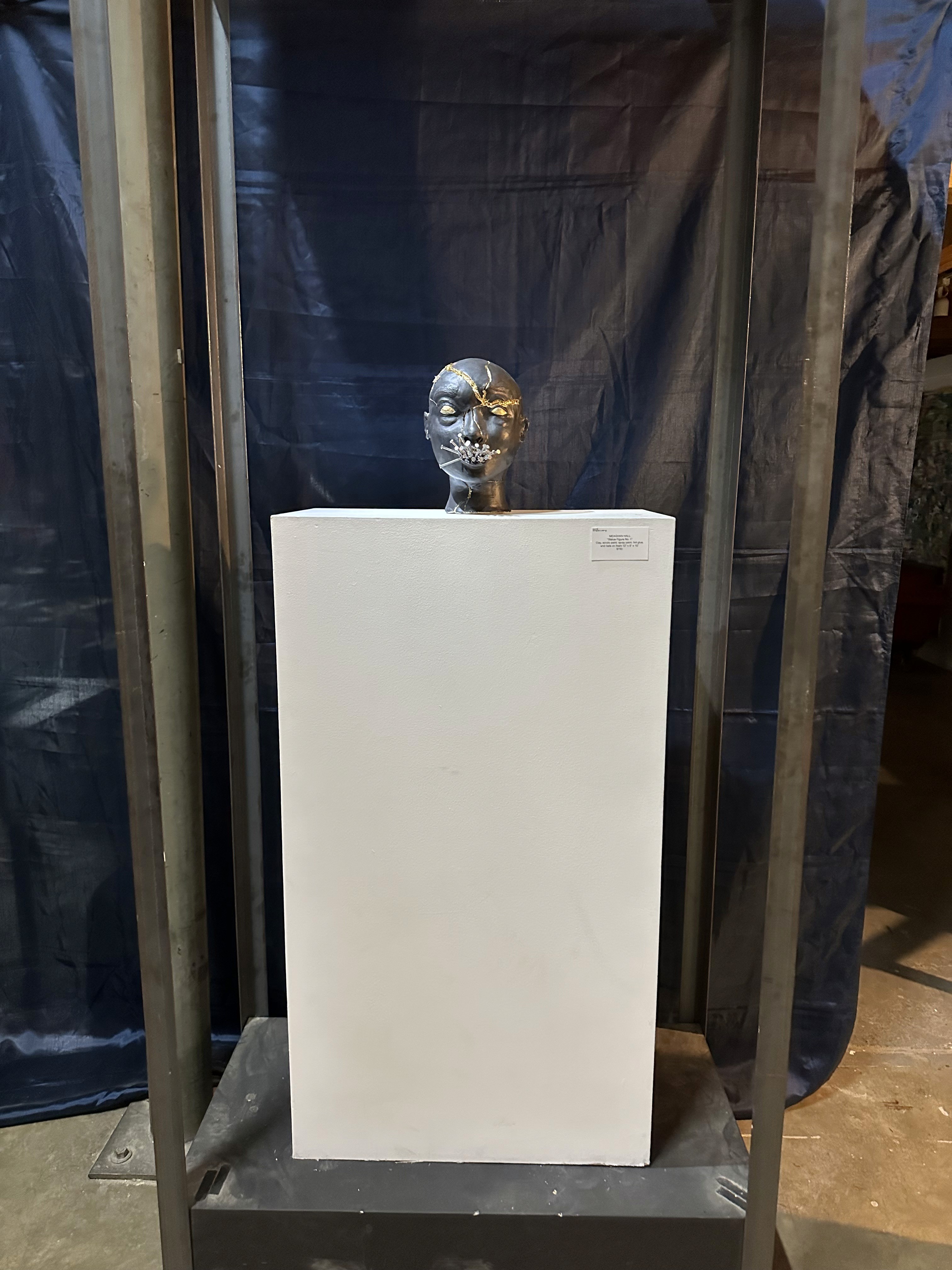 The artwork titled “Statue Figure No. 1” is a representation of the black body in America. Violently silenced, too often generalized, I wanted to make a piece of art that reflected an unfortunate but very real reality. Although there’s so much violence inflicted against us, and we are only seen as black figures, we are worth so much more on the inside and despite it all that continues to shine through.